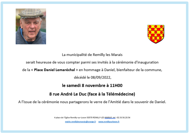 Vous pouvez contacter la mairie de Remilly-les-Marais au 02 33 56 20 54 pour des renseignements complémentaires.
